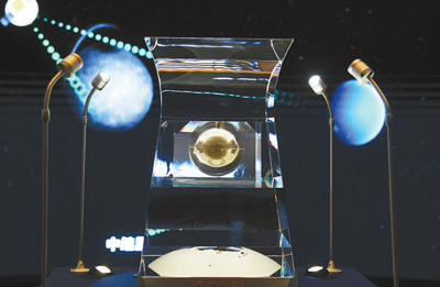 ▲在中國國家博物館展出的月球樣品001號。新華社記者 金良快攝