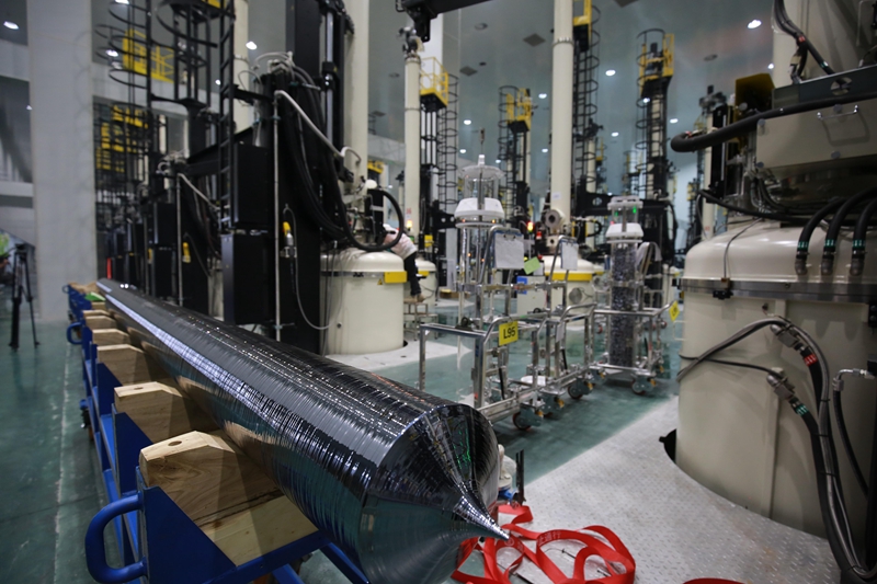 銀川隆基光伏15GW項(xiàng)目生產(chǎn)出的單晶硅棒。隆基股份供圖