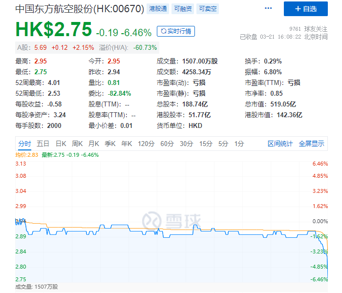 消息出來之后,東航港股尾盤直線下滑。而在美股盤前跌超15%。波音股價美股盤前暴跌7%。