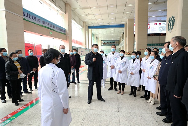 2021年3月23日,習(xí)近平總書記在福建省三明市沙縣總醫(yī)院住院樓一層大廳,同醫(yī)護(hù)人員、患者親切交流。