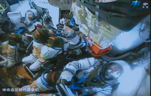 19時(shí)20分,北京航天飛行控制中心通過地面測(cè)控站發(fā)出返回指令,神舟十四號(hào)載人飛船軌道艙與返回艙成功分離。此后,飛船返回制動(dòng)發(fā)動(dòng)機(jī)點(diǎn)火,返回艙與推進(jìn)艙分離。返回艙成功著陸后,擔(dān)負(fù)搜救回收任務(wù)的搜救分隊(duì)及時(shí)發(fā)現(xiàn)目標(biāo)并抵達(dá)著陸現(xiàn)場(chǎng)。返回艙艙門打開后,醫(yī)監(jiān)醫(yī)保人員確認(rèn)航天員身體健康。