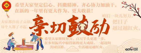 村民們熱烈鼓掌,總書記給大家拜年,祝鄉(xiāng)親們生活越來越幸福。