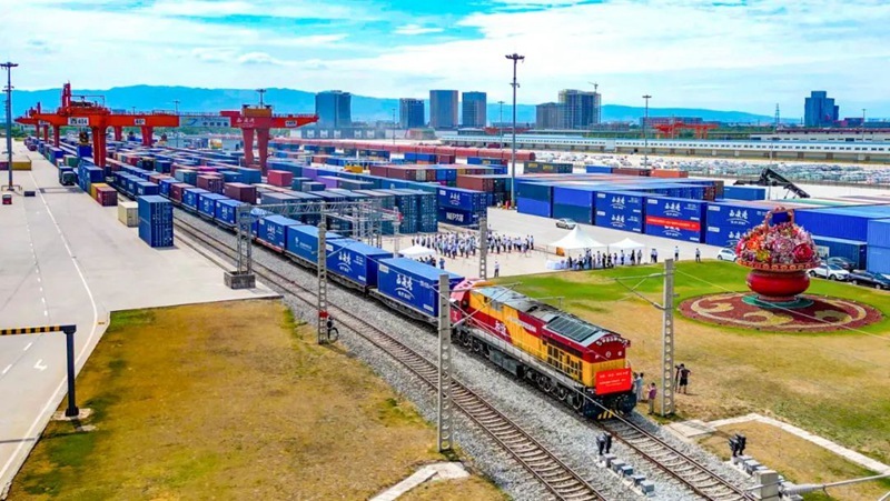 ▲中歐班列“長安號(hào)”駛出西安港。西安國際港務(wù)區(qū)供圖