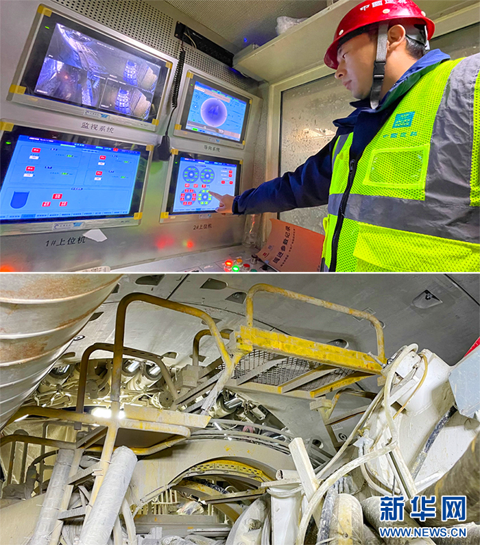 1月3日,在西安地鐵15號(hào)線一期工程長(zhǎng)安廣場(chǎng)站建設(shè)工地上,盾構(gòu)機(jī)司機(jī)吳桃操作盾構(gòu)機(jī)作業(yè)。今年39歲的吳桃是江蘇淮安人,他說(shuō)自己當(dāng)盾構(gòu)機(jī)司機(jī)已經(jīng)20年了,很喜歡這份工作。“希望過(guò)年能回家和家人團(tuán)聚,如果趕工期就堅(jiān)守崗位?!眳翘艺f(shuō)。新華網(wǎng) 楊喜龍 攝(拼版照片)