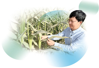 胡樹文在察看玉米生長(zhǎng)情況。本報(bào)記者 趙永新攝