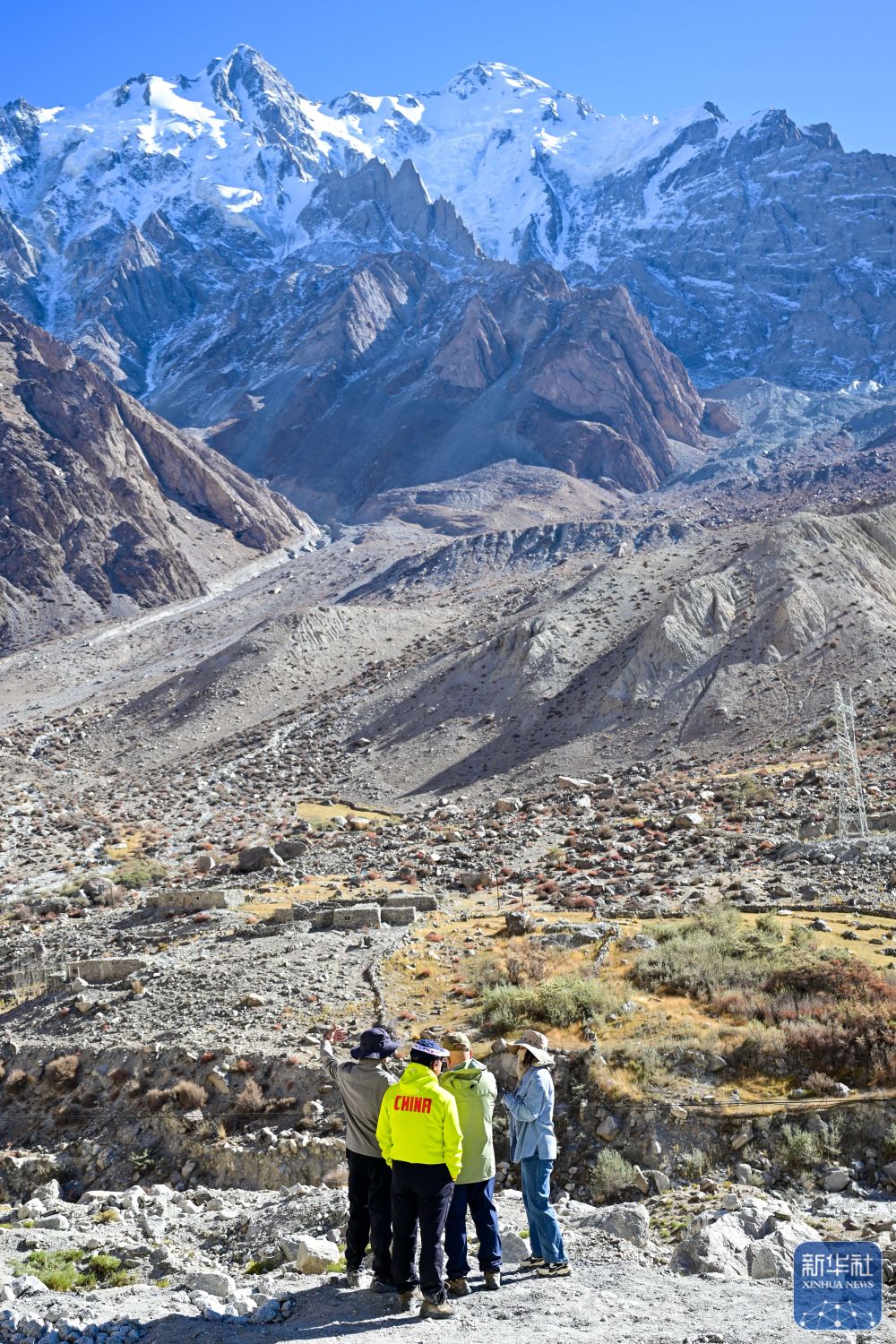 在新疆克孜勒蘇柯爾克孜自治州阿克陶縣布倫口鄉(xiāng),專家學(xué)者在查看遠(yuǎn)處的古道(10月19日攝)。