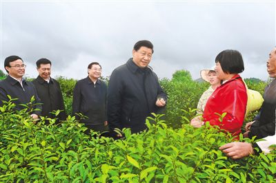 位于老縣鎮(zhèn)蔣家坪村的女媧鳳凰茶業(yè)現(xiàn)代示范園區(qū),屬于蘇陜扶貧協(xié)作項(xiàng)目,通過“黨支部+龍頭企業(yè)+貧困戶”的模式,帶動(dòng)100多戶貧困戶年人均增收千元以上。深山之中,春雨淅瀝,云霧繚繞。習(xí)近平拾級(jí)而上,步入茶園,沿途察看春茶長(zhǎng)勢(shì),同茶農(nóng)們親切交談,仔細(xì)詢問茶葉收成、價(jià)格和村民土地流轉(zhuǎn)、參加分紅、務(wù)工收入等情況。他指出,人不負(fù)青山,青山定不負(fù)人。綠水青山既是自然財(cái)富,又是經(jīng)濟(jì)財(cái)富。希望鄉(xiāng)親們堅(jiān)定不移走生態(tài)優(yōu)先、綠色發(fā)展之路,因茶致富、因茶興業(yè),脫貧奔小康。