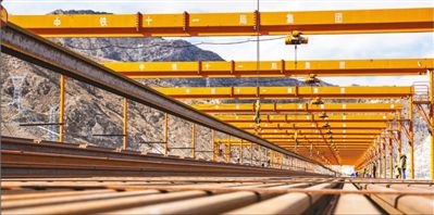 4月23日,拉林鐵路今年復(fù)工以來(lái)的首列長(zhǎng)鋼軌進(jìn)入?yún)f(xié)榮鋪架基地。袁 泉 丁慶濱攝影報(bào)道
