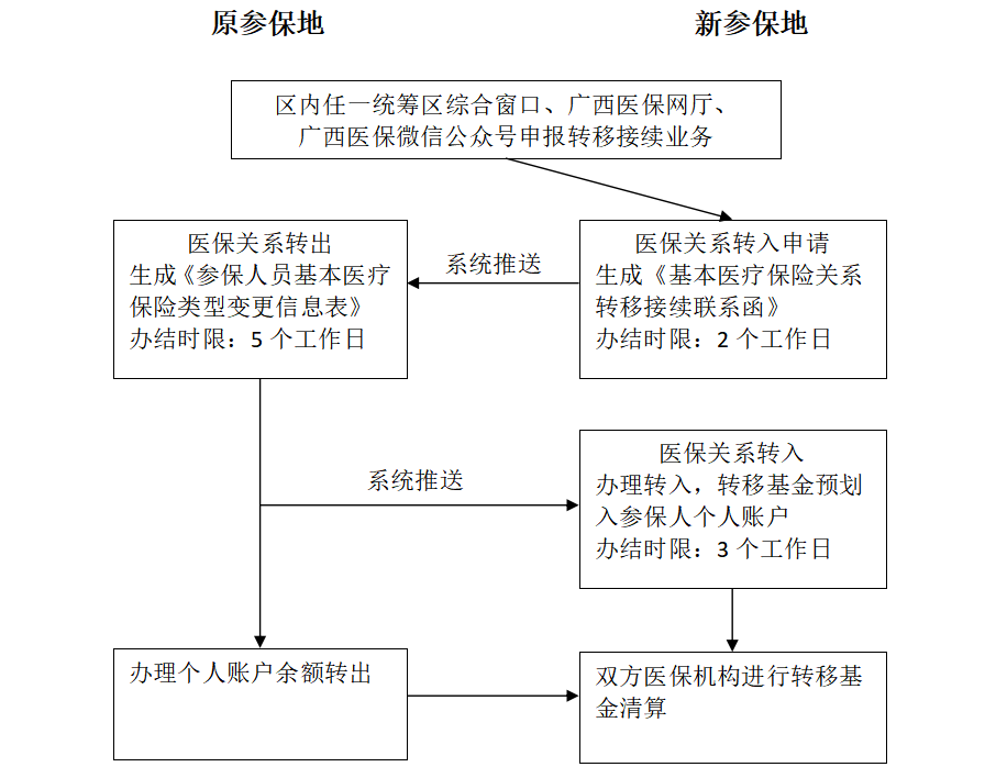 廣西壯族自治區(qū)醫(yī)療保障局介紹,以往的轉(zhuǎn)移流程一般需要通過四個步驟,一是參保人需要在原參保地打印參保憑證;二是參保人持該憑證到新參保地醫(yī)保經(jīng)辦機(jī)構(gòu)辦理轉(zhuǎn)入申請,新參保地開具轉(zhuǎn)移聯(lián)系函后通過郵政速遞方式寄回原參保地;三是原參保地憑轉(zhuǎn)移聯(lián)系函通過開具變更信息表以及撥付轉(zhuǎn)移基金將參保人的參保年限和個賬余額轉(zhuǎn)出至新參保地;四是新參保地收到變更信息表且轉(zhuǎn)移基金到賬后辦理轉(zhuǎn)入手續(xù)。