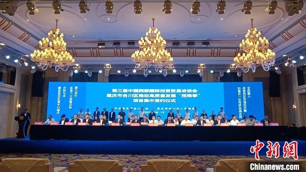 中新網(wǎng)重慶5月19日電 (記者 鐘旖)19日,借力第三屆中國(guó)西部國(guó)際投資貿(mào)易洽談會(huì)東風(fēng),重慶市合川區(qū)舉行推動(dòng)高質(zhì)量發(fā)展招商引資項(xiàng)目集中簽約儀式,集中簽約53個(gè)優(yōu)質(zhì)項(xiàng)目,協(xié)議投資326億元,預(yù)計(jì)年產(chǎn)值387億元。