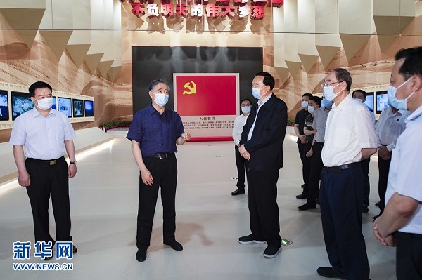 7月21日至24日,中共中央政治局常委、全國政協(xié)主席汪洋在新疆調研兵團工作。這是22日,汪洋在新疆兵團軍墾博物館了解兵團屯墾戍邊歷史。新華社記者 李濤 攝