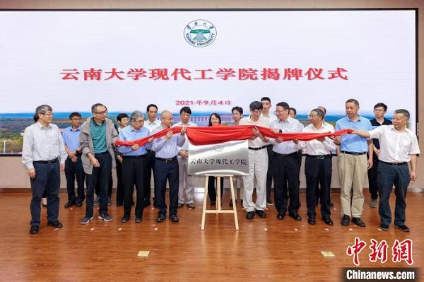 圖為云南大學(xué)現(xiàn)代工學(xué)院揭牌。 繆超 攝