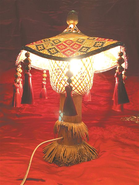 竹編《毛南族花竹帽臺燈》。譚汝/制作