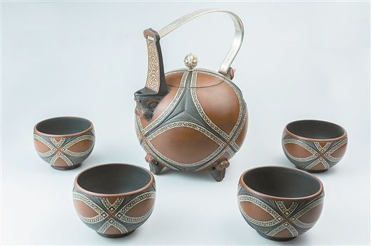 坭興陶作品《錦繡前程》作者之一的黃劍是土生土長的南寧人,他的獲獎作品以繡球的造型,體現(xiàn)壯族的陰刻陽填五蛙圖騰文化。在黃劍看來,正是這古老而深沉的壯族文化,才賦予茶具以靈魂,才贏得人們的喜愛。