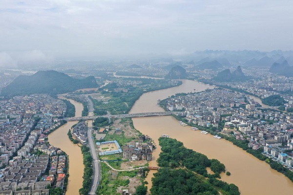 這是6月22日拍攝的漓江桂林城區(qū)段(無人機照片)。新華社記者曹祎銘 攝