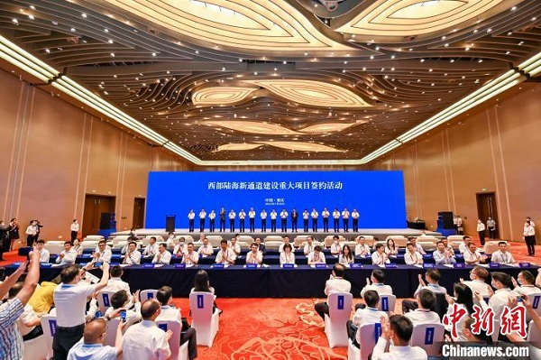 中新網(wǎng)重慶7月23日電 (高呂艷杏)作為在第四屆中國(guó)西部國(guó)際投資貿(mào)易洽談會(huì)期間同步舉辦的重要會(huì)議,西部陸海新通道省際協(xié)商合作聯(lián)席會(huì)議第二次會(huì)議在此間召開?,F(xiàn)場(chǎng)20個(gè)西部陸海新通道重大項(xiàng)目簽約,并發(fā)布了《國(guó)際陸海貿(mào)易新通道發(fā)展報(bào)告(2017-2022)》。