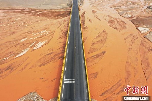 圖為青海格爾木至老茫崖公路穿過(guò)河流。青海省交控集團(tuán)供圖