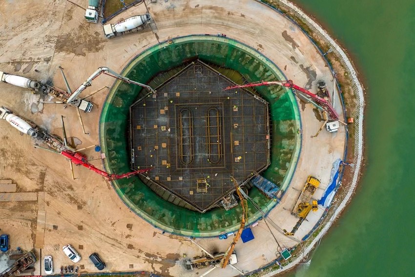 今年4月,成達(dá)萬高鐵嘉陵江特大橋9號(hào)主墩承臺(tái)澆鑄完成。成達(dá)萬公司供圖