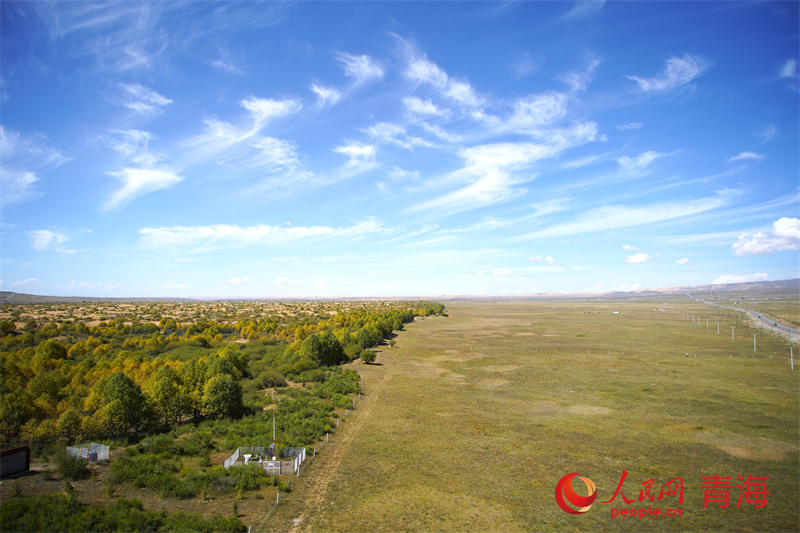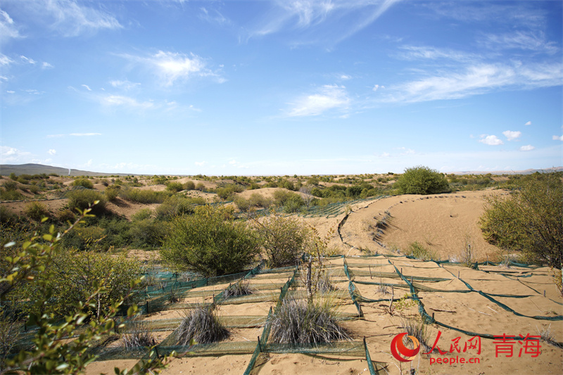 青海省海南州貴南縣黃沙頭防風阻沙帶。人民網記者 甘海瓊攝