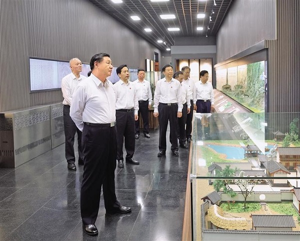 7月29日,中共中央總書記、國家主席、中央軍委主席習近平在四川考察結(jié)束返京途中,來到陜西省漢中市考察。這是習近平參觀漢中市博物館有關(guān)歷史文物展陳。新華社記者鞠鵬攝