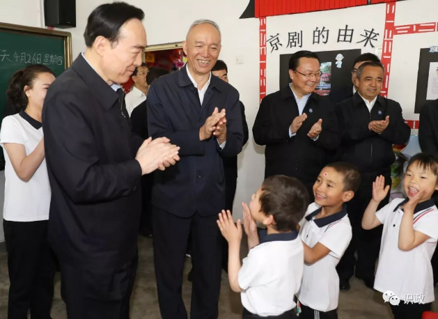 民族團(tuán)結(jié)是各族人民的生命線。蔡奇察看墨玉縣北京中學(xué)后,來到和田縣和諧新村。這個(gè)沙漠中的新村,有10個(gè)民族群眾混居,不僅建立了“嵌入式社會(huì)結(jié)構(gòu)”,還通過發(fā)展適宜產(chǎn)業(yè)提高了農(nóng)民收入。蔡奇察看新村建設(shè)后,走進(jìn)新村幼兒園。正在上課的不同民族小朋友,看到來了這么多客人,一片歡呼雀躍,用稚嫩的童音給大家唱了一曲《我愛北京天安門》。教室里,洋溢著民族團(tuán)結(jié)的濃厚氛圍。