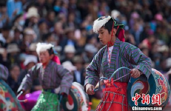圖為開幕式現(xiàn)場富有民族特色的表演 何蓬磊 攝