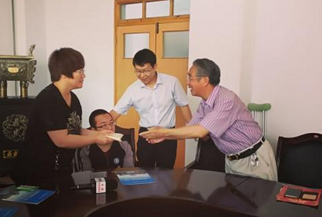 6月28日,清華大學(xué)甘肅校友會向魏祥同學(xué)資助一萬元。圖片來源:甘肅省教育廳官方微博