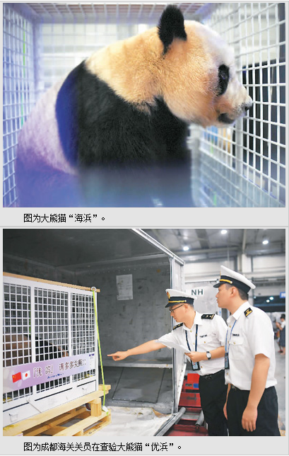 6月5日晚,3只旅日大熊貓“海浜”“陽浜”“優(yōu)浜”平安抵達成都雙流國際機場。經過檢驗檢疫部門消毒放行、海關現(xiàn)場查驗并辦理通關手續(xù)后,3只大熊貓于6日凌晨返回成都大熊貓繁育研究基地。在一個月的檢疫期后,它們將與公眾見面。