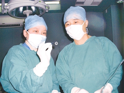 姚曉明(右)在進行張玉梅的眼角膜移植手術(shù)