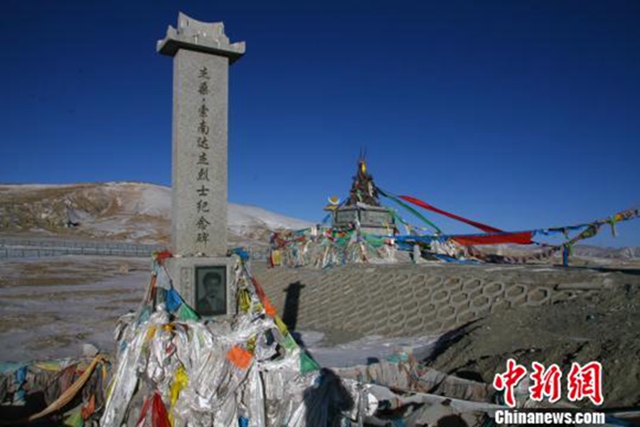 現(xiàn)在,騎行者穿越可可西里時會在索南達(dá)杰的碑前獻(xiàn)上哈達(dá)或點燃一支煙;巡山隊員們每次經(jīng)過此地時,都會下車默哀;青藏線上的大車司機(jī)每次到昆侖山口時,都會鳴笛,撒上象征吉祥的風(fēng)馬;許多年輕人追隨他的腳步,走上環(huán)保道路。圖為2013年索南達(dá)杰紀(jì)念雕像在昆侖山口落成。