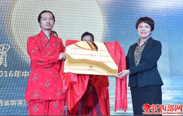趙晁藝代表長(zhǎng)安華夏民族服飾文化研究聯(lián)誼會(huì)、姜姍秀華夏民族服飾會(huì)館及華服道(國(guó)際)商學(xué)院三家機(jī)構(gòu)授予涇渭國(guó)際酒店文化交流中心、非遺體驗(yàn)中心及咨詢培訓(xùn)中心銅牌。