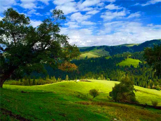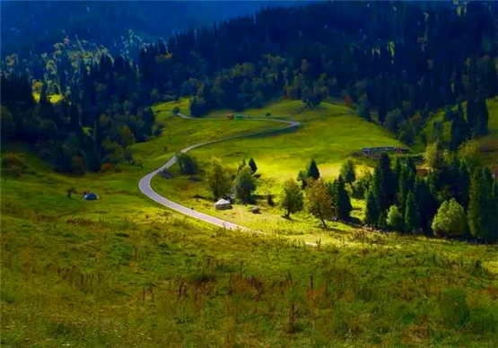 盤龍谷是大自然的杰作,近處的山林依偎著遠處的雪山,沿山路在綠草地、白氈房、彩山林、黑牲靈中蜿蜒穿行,儼然一道色彩的盛宴,自然純凈,猶入童話世界,不染世俗。