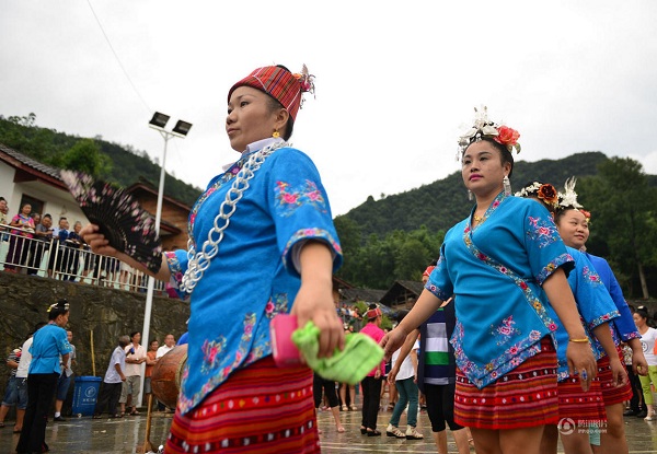 交榜村的苗族人在“抬狗節(jié)”活動(dòng)中踩著鼓點(diǎn)狂歡。