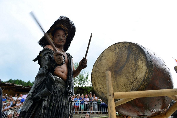 “抬狗節(jié)”當(dāng)天人們不但會(huì)抬狗走村串寨,還會(huì)有旋律地敲鼓。