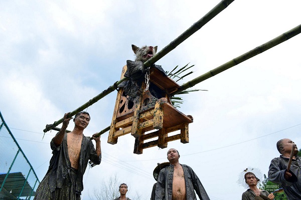 “抬狗節(jié)”一般在每年農(nóng)歷七月辰日這天舉辦,節(jié)日期間村民們給狗戴上小虎帽、穿上人衣,用特制的木凳抬上狗走村串寨,以示對(duì)狗的尊重,祈求風(fēng)調(diào)雨順,五谷豐登。