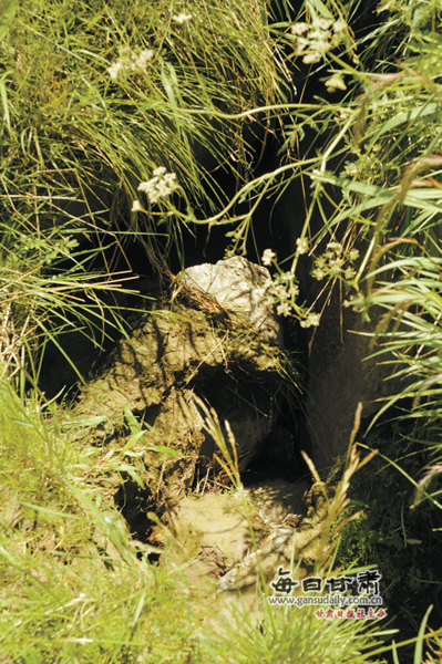 沒走多遠(yuǎn),郭師傅示意停車。他指著路邊一片開得燦爛的馬蓮花說:“窟窿到了,你們先不要著急去看,等我先去探查一番,再跟過來,要是掉進(jìn)窟窿里就麻煩了?!瘪R蓮花高過膝蓋,密不見底。站在路邊看著郭師傅也是小心翼翼地剝開花草,一步一步慢慢地移動(dòng)。就要揭開謎底了,怎么還能忍得住呢?跟在郭師傅身后,記者也一步一步踩著他的腳印前行。