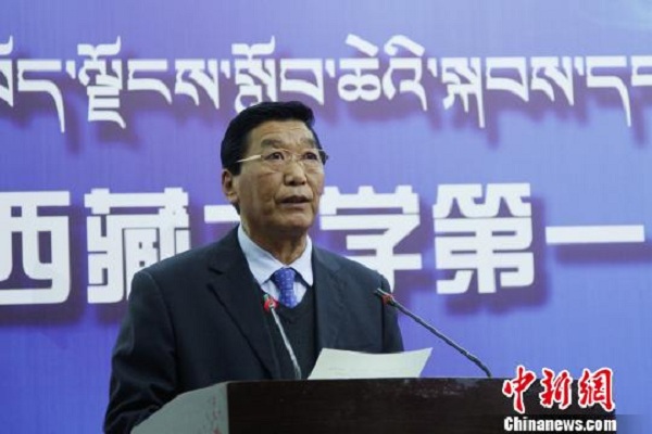 圖為西藏大學(xué)黨委書(shū)記尼瑪次仁作致辭。 趙朗 攝