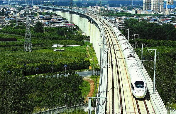 2013年12月28日,架設(shè)在絲綢之路經(jīng)濟(jì)帶上的首條高鐵——西寶高鐵開通運(yùn)營(yíng)。