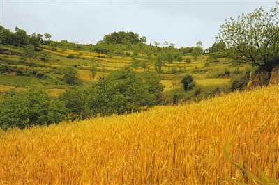 回想之前在山腳下遠(yuǎn)望仇池山,高大而遙不可及,心想如果成功登頂,山頂一定陡峭艱險(xiǎn)而難有立足之地??墒?,眼前卻是大片大片的農(nóng)田,金黃色的麥田等待著收割,掛滿果實(shí)的核桃樹低低地垂著枝干,儼然一派田園豐收的景象。