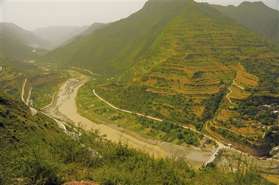 平視,對(duì)面同屬一個(gè)山系的山坡上,滿是層層梯田,一直快要延續(xù)到了山頂。王旭峰說,對(duì)面的幾座山頭,都有豐富的金礦,可是為了保護(hù)自然環(huán)境,并沒有開采。這里山脈連綿,極少有平整適宜耕種的土地,所以,曾經(jīng)當(dāng)?shù)氐陌傩詹晃菲D險(xiǎn),上山開辟梯田。而現(xiàn)今,人們?yōu)榱嗣利惖募覉@,退耕還林,種上了核桃、油橄欖等經(jīng)濟(jì)林木。