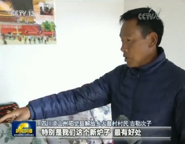 四川涼山州昭覺(jué)縣解放鄉(xiāng)火普村村民 吉勒次子:以前我們做啥都是坐在地上,現(xiàn)在新沙發(fā)也買(mǎi)起了,茶幾也買(mǎi)起了,特別是我們這個(gè)新?tīng)t子,最有好處,冬天燒著火非常安逸。