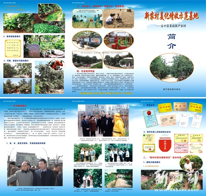 實(shí)踐證明,該項(xiàng)目具有五大特點(diǎn):一是具有新農(nóng)村建設(shè)要求的“產(chǎn)業(yè)發(fā)展,村容整潔,生活富裕”之特點(diǎn)。二是增收效益顯著。院內(nèi)葡萄、蔬菜和門前柿子戶均年增收1500多元,是過去栽桐樹、槐樹效益的10倍之多。三是村容整潔秀美。盛夏走進(jìn)葡萄走廊,紅、白、紫、黑色葡萄誘人入迷,并有陰涼之爽;秋末大紅尖柿滿枝頭,成為村容一大景觀,過往賓客贊不絕口;寒冬,濃綠的冬青一排排,點(diǎn)綴北方農(nóng)村,呈現(xiàn)一派江南風(fēng)光。四是房上雨水--窖下蓄儲--澆灌葡萄、蔬菜、柿子,具有生態(tài)效應(yīng)。五是葡萄樹行間套種蔬菜,柿樹下套栽冬青具有立體開發(fā)之功效?,F(xiàn)在示范區(qū)庭院葡萄發(fā)展到137戶,巷道柿子發(fā)展到12條巷360多戶。