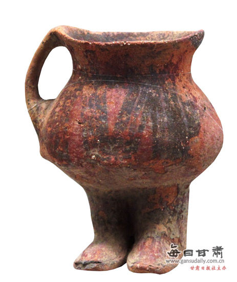 這是在四壩文化類型的玉門火燒溝遺址出土的陶鼎。它的出土將許多未解秘密展現(xiàn)在了人們面前,創(chuàng)造了四壩文化的先民,究竟是一支怎樣的部族呢?既然他們在陶鼎上塑有猛犬,似乎是個以犬為圖騰的部族,他們是否就是古史中所說的犬戎呢?