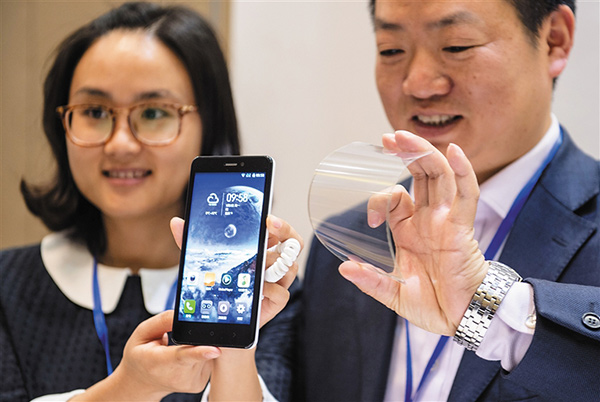 在今年高交會的現(xiàn)場,重慶造的石墨烯手機就已經(jīng)亮瞎了許多參觀者的眼睛。這款石墨烯柔性屏手機比一般的手機長一些、窄一點,屏幕有5.2英寸大,可以彎成一個圓環(huán),戴在人的手腕處。和現(xiàn)在的可穿戴智能設備相反,它的屏幕是軟的,電池、主板等部件是硬的。這個手機最大的特點就是可穿戴,可觸控、可儲存電話,是一款智能手機。和現(xiàn)在電話手表等可穿戴設備不同,它不僅能穿戴而且方便操作。