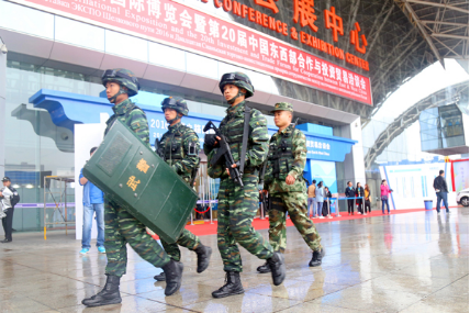 “2016絲綢之路國(guó)際博覽會(huì)暨第20屆中國(guó)東西部合作與投資貿(mào)易洽談會(huì)”13日在西安召開(kāi),24小時(shí)巡邏警戒在大會(huì)各展廳和重要會(huì)場(chǎng)外的武警西安支隊(duì)安保官兵,以嚴(yán)謹(jǐn)熱情的執(zhí)勤服務(wù)參與盛會(huì),為世界焦點(diǎn)筑起堅(jiān)強(qiáng)“堡壘”。