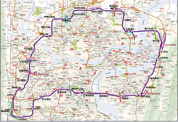環(huán)線工程是重慶軌道交通線網(wǎng)中唯一的閉合環(huán)形線路,線路全長50.9公里,共設(shè)33座車站。分為環(huán)線一期和環(huán)線二期。其中,環(huán)線一期工程從沙坪壩重慶西站經(jīng)重慶北站至南岸區(qū)上浩站,長32.5公里,設(shè)站22座,分別是重慶西站、上橋站、鳳鳴山站、鳳天路站、天星橋站、沙坪壩站、沙正街站、玉帶山站、南橋寺站、體育公園站、冉家壩站、動步公園站(原西湖路站)、洪湖東路站、民安大道站、重慶北站南廣場站(原重慶北站)、渝魯站(原五童路站)、五里店站、彈子石站、涂山站、仁濟(jì)站(原蓮花村站)、上新街站、上浩站。