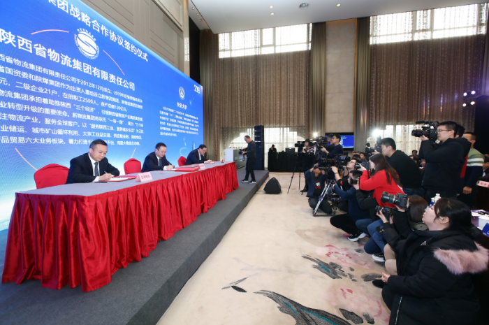會上,新成立的陜西物流集團(tuán)分別與西安國際港務(wù)區(qū)管委會、延長石油集團(tuán)有限公司、京東物流西北分公司、中遠(yuǎn)海運集裝箱運輸有限公司、江蘇悅達(dá)集團(tuán)有限公司、浙江中大物產(chǎn)集團(tuán)公司6家單位簽訂了戰(zhàn)略合作協(xié)議。與國家開發(fā)銀行陜西省分行、中國農(nóng)業(yè)發(fā)展銀行陜西省分行、中國工商銀行陜西省分行、中國銀行陜西省分行、中國農(nóng)業(yè)銀行陜西省分行、中國建設(shè)銀行陜西省分行、交通銀行陜西省分行、中國光大銀行西安分行8家金融機(jī)構(gòu)簽訂了協(xié)議,8家銀行共向陜西物流集團(tuán)綜合授信1060億元。陜西物流集團(tuán)還與西安交通大學(xué)(管理學(xué)院)和長安大學(xué)兩所高等院校簽訂了合作協(xié)議。