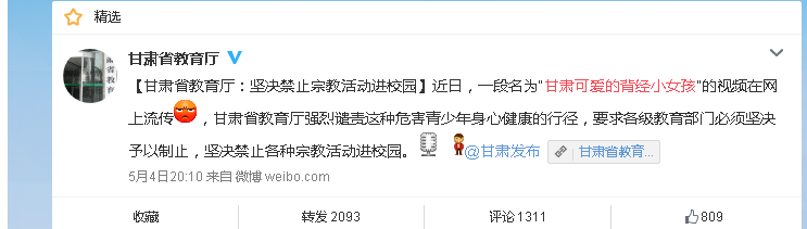 原標(biāo)題:甘肅省教育廳:堅(jiān)決禁止宗教活動進(jìn)校園