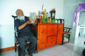 趙尚忠在把玩他收集到的陶罐