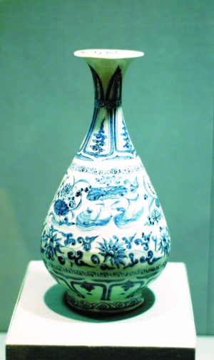 衙下集鎮(zhèn)出土的元代花卉紋青花玉壺春瓶(首席記者王文元攝)